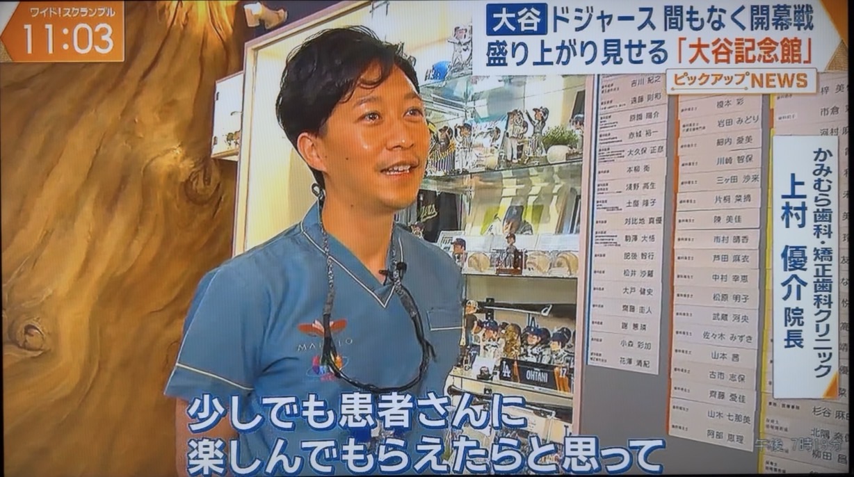 ドジャースの開幕戦に向けた盛り上がりの中、当院自慢の「大谷翔平選手応援コーナー」や、インタビューに答えてくださった熱いファンである患者様の様子が放映されました。