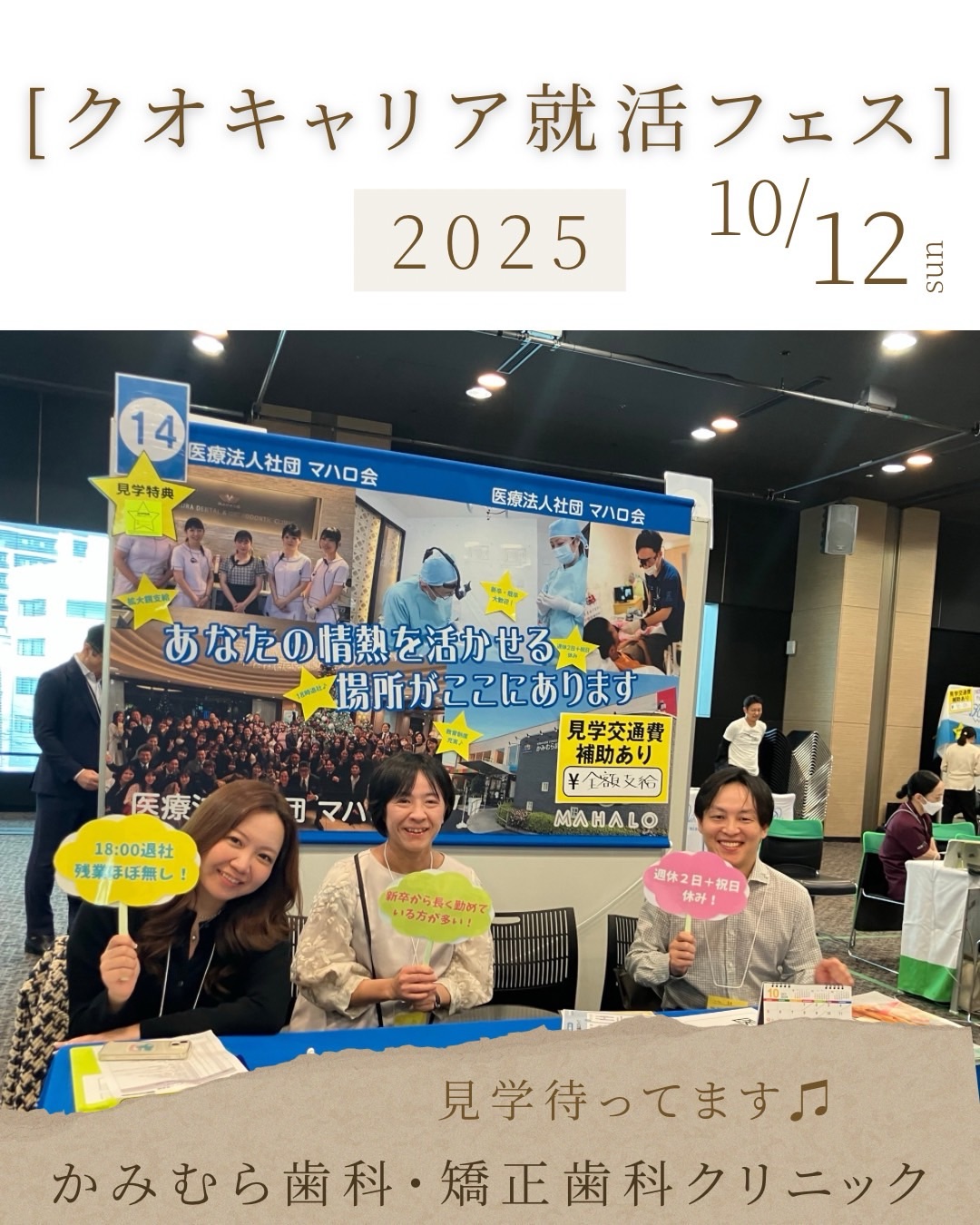こんにちは。 埼玉県越谷市の かみむら歯科・矯正歯科クリニック です。 10月12日(日)に開催された「東京DH就活フェス」に、当院のスタッフが参加してきました! このイベントは、歯科衛生士を目指す学生さんたちが多く集ま …