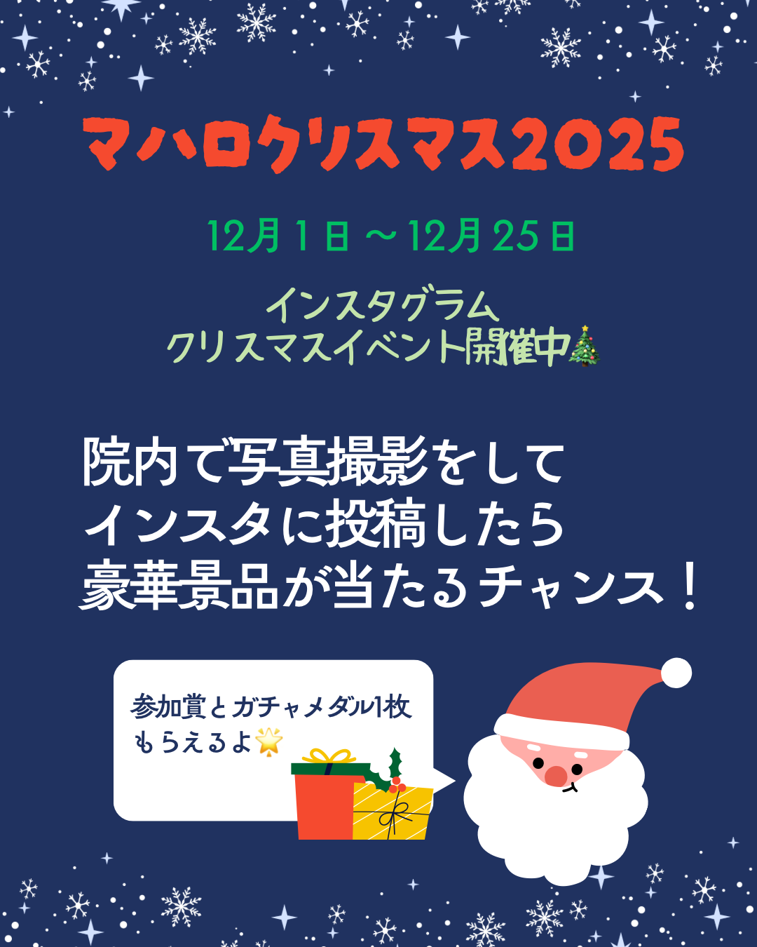 こんにちは、かみむら歯科・矯正歯科クリニックです かみむら歯科インスタグラムイベント、マハロクリスマス2025開催中 【期間】12月1日(月)〜12月25日(木) 【方法】①院内の好きなところで写真撮影②kamimura …