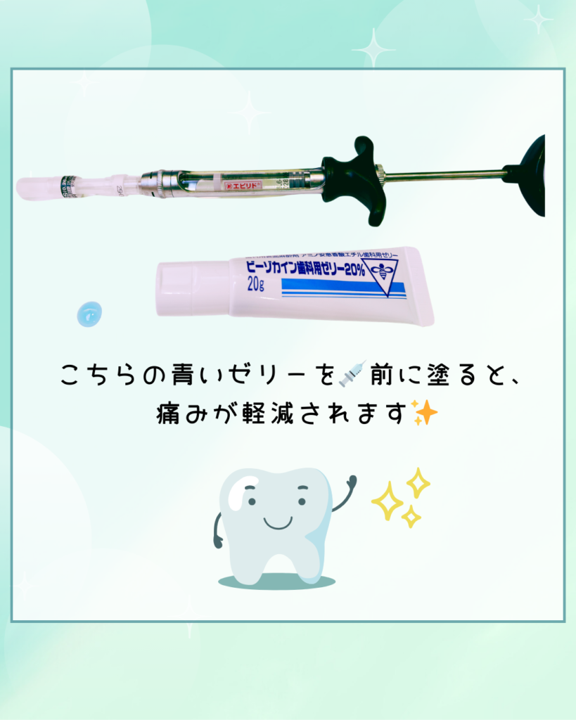 当院ではいきなり注射をするのではなく、まず歯肉に”表面麻酔“を行い、感覚を鈍らせてから麻酔の注射をしています