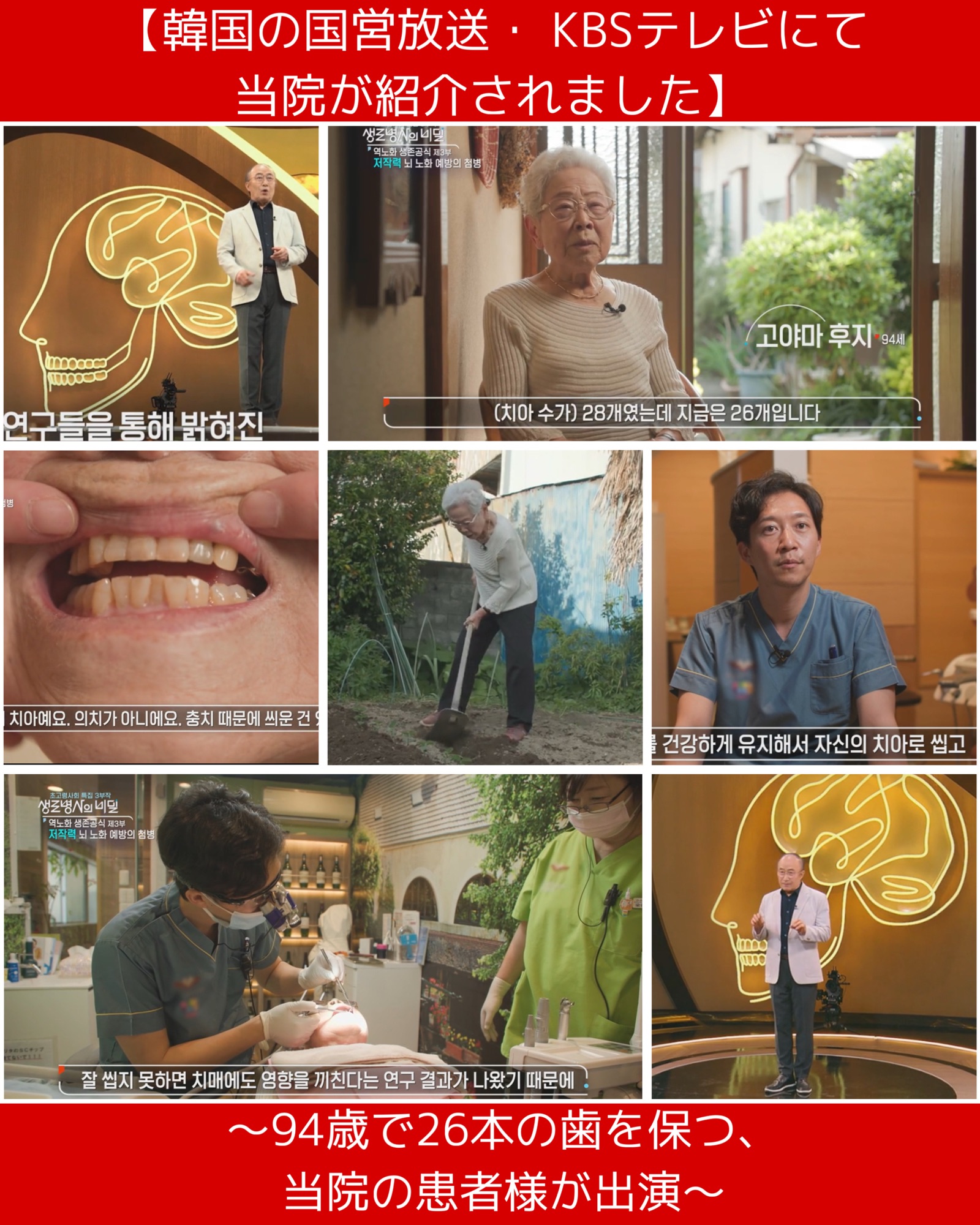 こうした当院の予防歯科への情熱と実績は、国内のみならず海外からも注目を集めています。2025年5月13日には、韓国の国営放送局である「KBSテレビ(韓国放送公社)」より直接取材を受け、当院の取り組みが韓国全土で放映されました。
