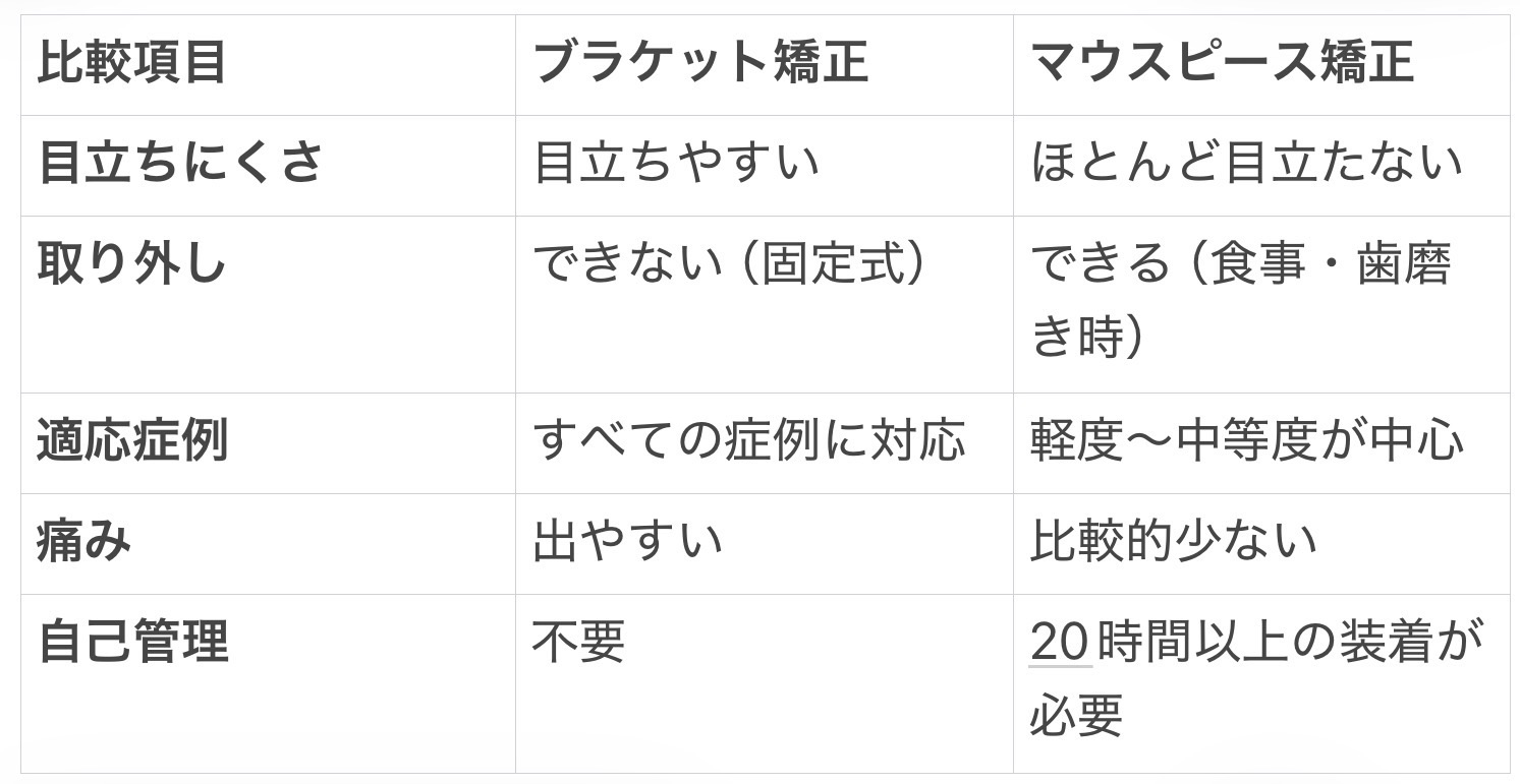 【徹底比較表】ブラケット矯正 vs マウスピース矯正