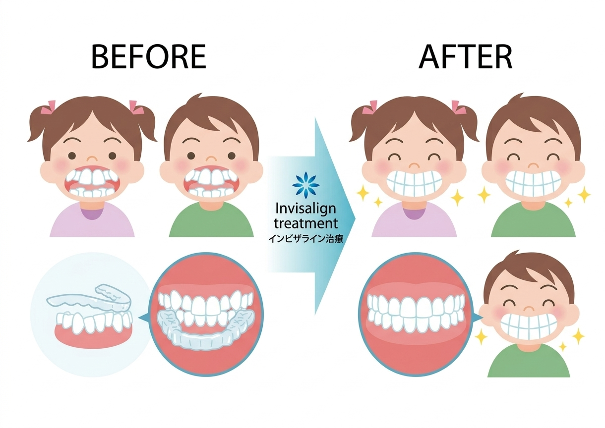 子供の矯正治療は、6歳〜12歳頃の「1期治療」で顎の土台を整え、12歳以降の「2期治療」で歯並びを完成させるのが一般的です。期間はトータルで数年かかりますが、成長の力を利用することで「抜歯をしない矯正」や「健やかな顔立ちの育成」が可能になります。