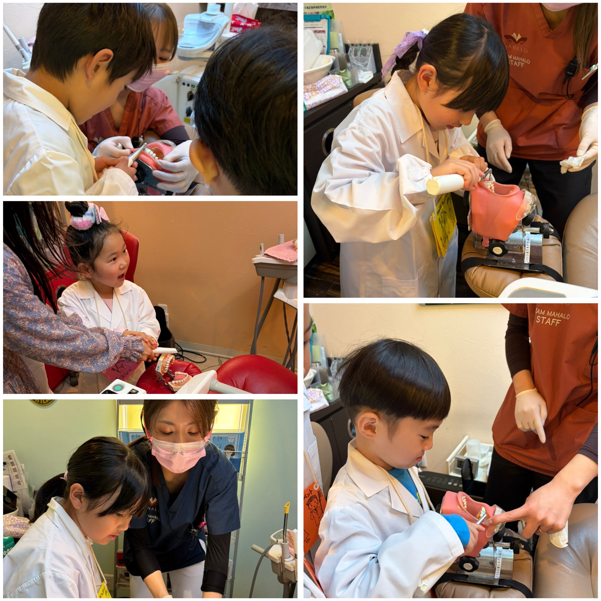 白衣に身を包んだ「ちびっこ歯医者さん」たちは、真剣な眼差しで治療の体験に取り組んでくれました。この体験が、歯医者さんを「怖い場所」ではなく「健康を守る楽しい場所」と感じるきっかけになれば、これほど嬉しいことはありません。