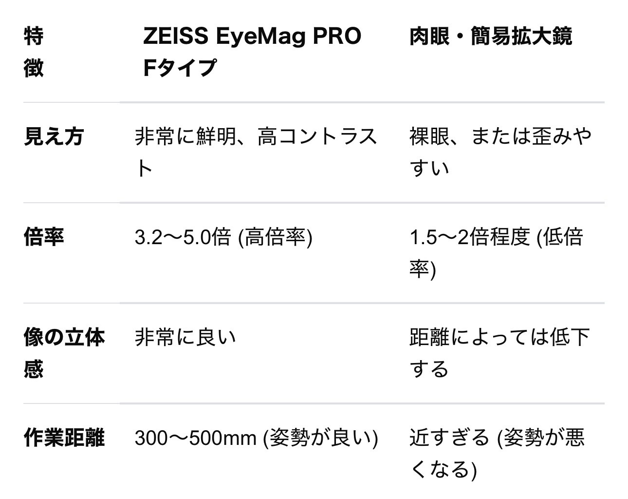 当院が採用している「EyeMag PRO Fタイプ」は、高倍率かつ極めてクリアな視界を確保できるプロフェッショナルモデルです。